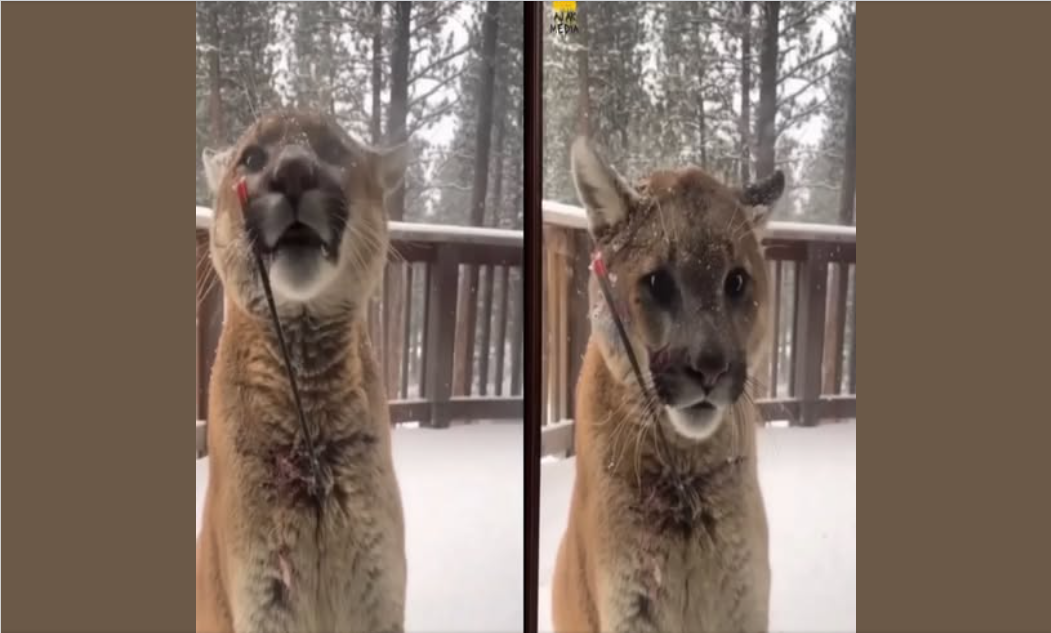 One snowy night, a violent thud broke the silence. At her sliding door stood an [in.jur.ed] mountain lion, an [a.rr.ow] lodged in its chest. Instead of [fe.ar], she felt only calm. “You’re safe now,” she whispered through the glass. Wildlife officers came, [se.dated] the animal, and carried it into the falling snow. As they left, the quiet no longer felt empty.