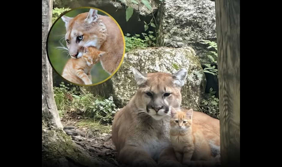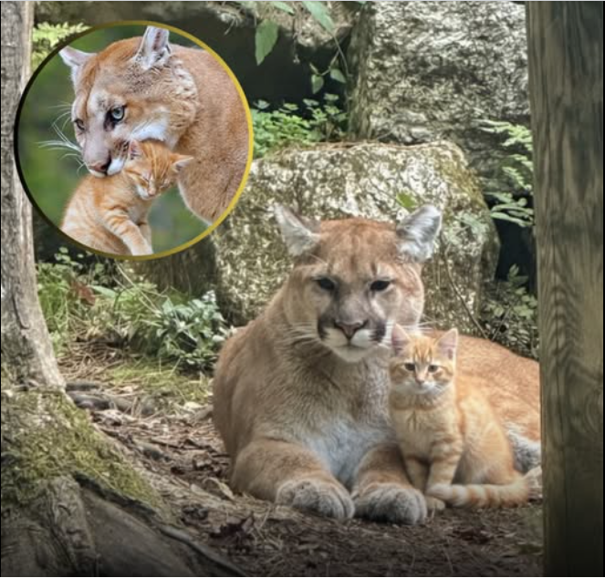 To Ethan’s astonishment, Sierra didn’t [at.ta.ck]. Instead, she crouched low, ears perked, and let out a soft chuffing sound—the same one she used with her cubs. The house cat meowed back, completely unaware of the [da.ng.er] — or the [co.nfu.sion]. For a few surreal moments, the mountain lion circled the cat gently, sniffing, her massive head lowering as if to nudge it.