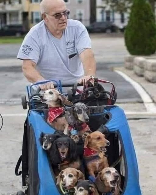 His name is Gregory Lane, known by locals as “the dog dad with the wheels.”