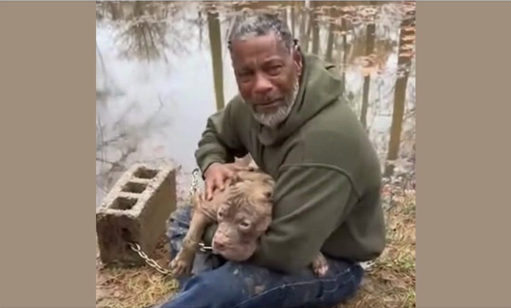 The pitbull was soaked, covered in swamp mud, and [te.rri.fied].