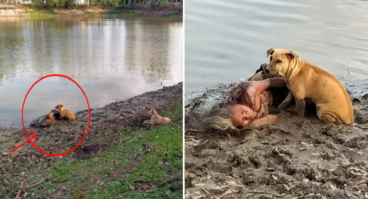 March 3, 2020, a photo posted on (Fb) that has [sh.oc.ked] many people, is an image of a dog guarding a helpless woman by a muddy riverbank.