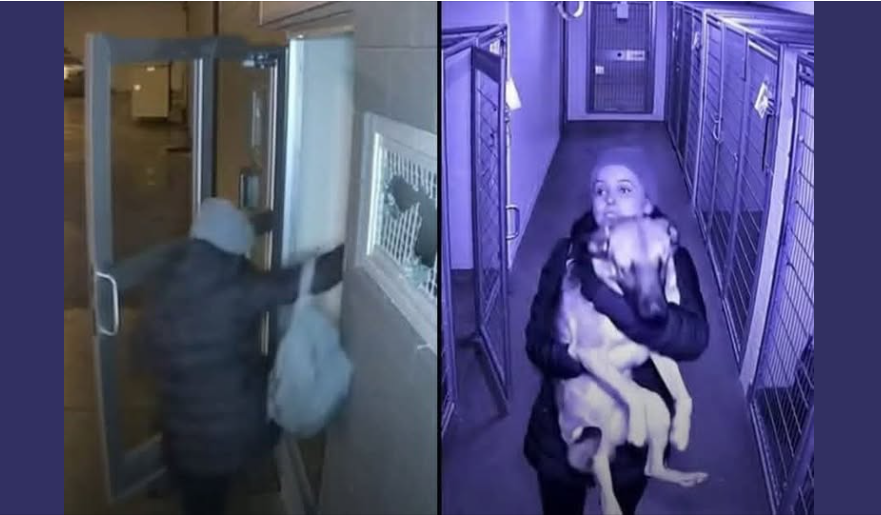 Shelter staff discovered the [b.re.ak-in] and the [mi.ssi.ng] dog. Police issued a [wa.rra.nt] for [bu.rgl.ary] and [th.e.ft]. Security footage clearly showed her [br.eak.ing] in.