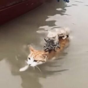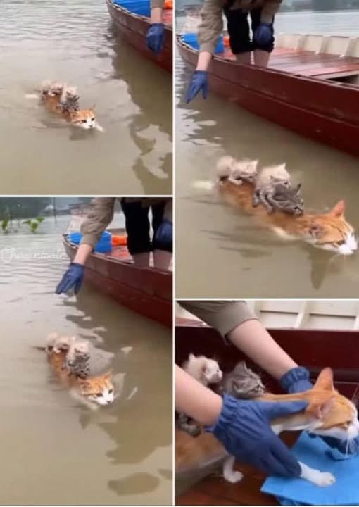 When [fl.oo.dwaters] [sw.allowed] the village in Philippines, and people captured a [he.artbre.aking] moment: a brave mother cat swimming through the [fl.oo.dwa.ters] with her three tiny kittens clinging tightly to her back.